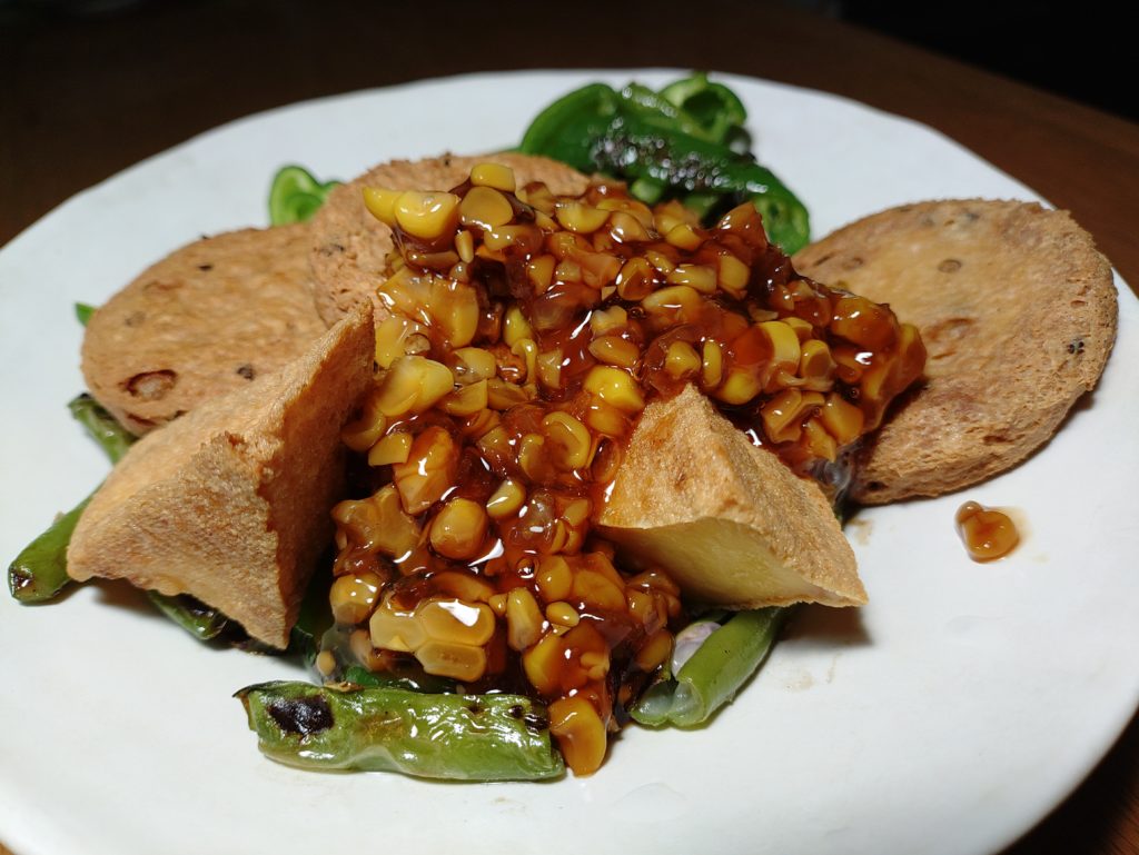 厚揚げ ししとう とうもろこし 昆布出汁 醤油 片栗粉