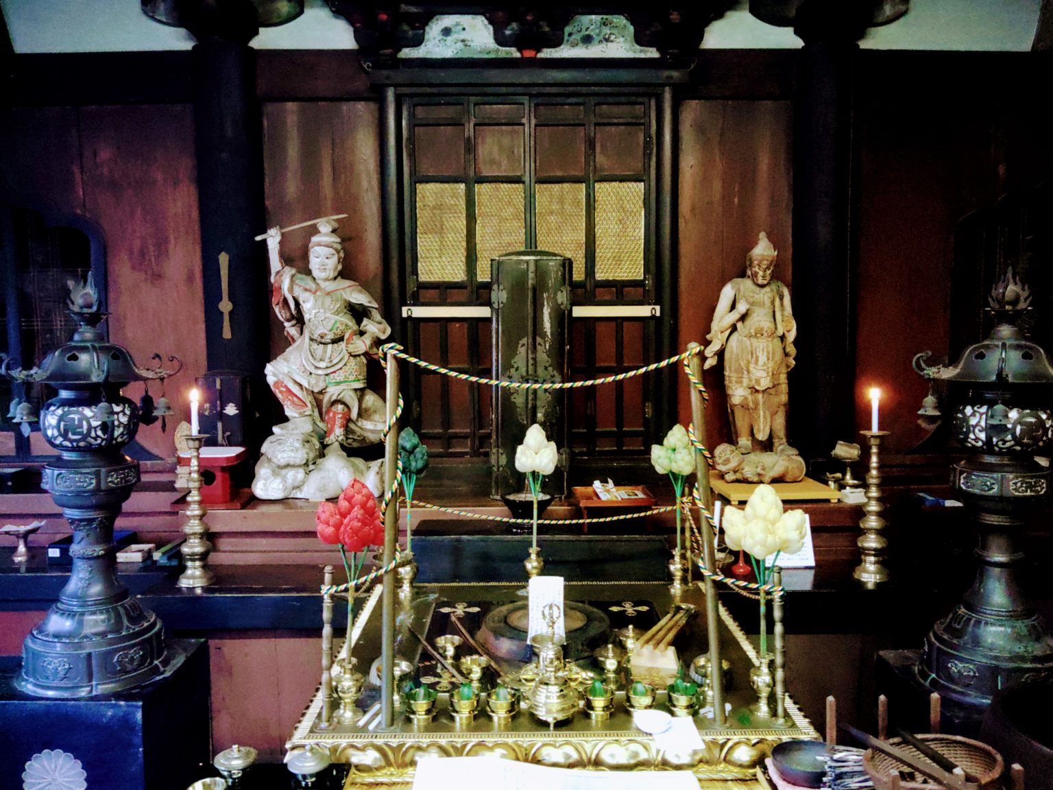 仏教と密教花を供え微笑む。